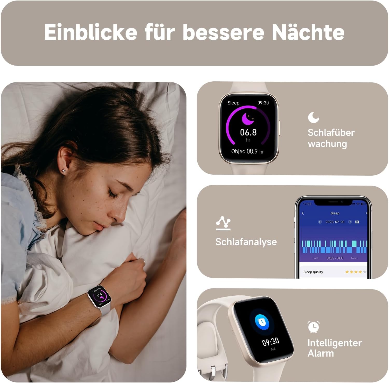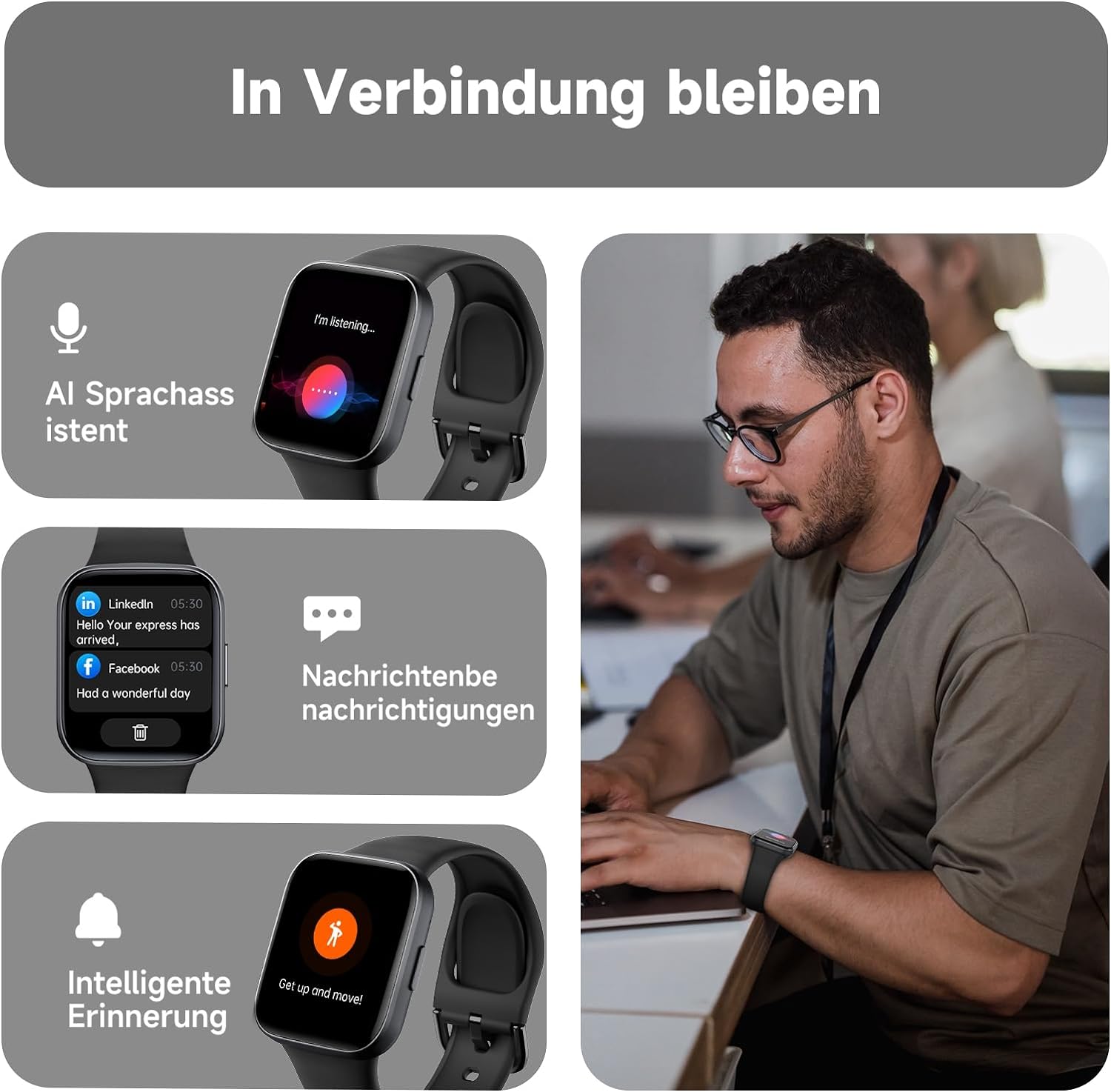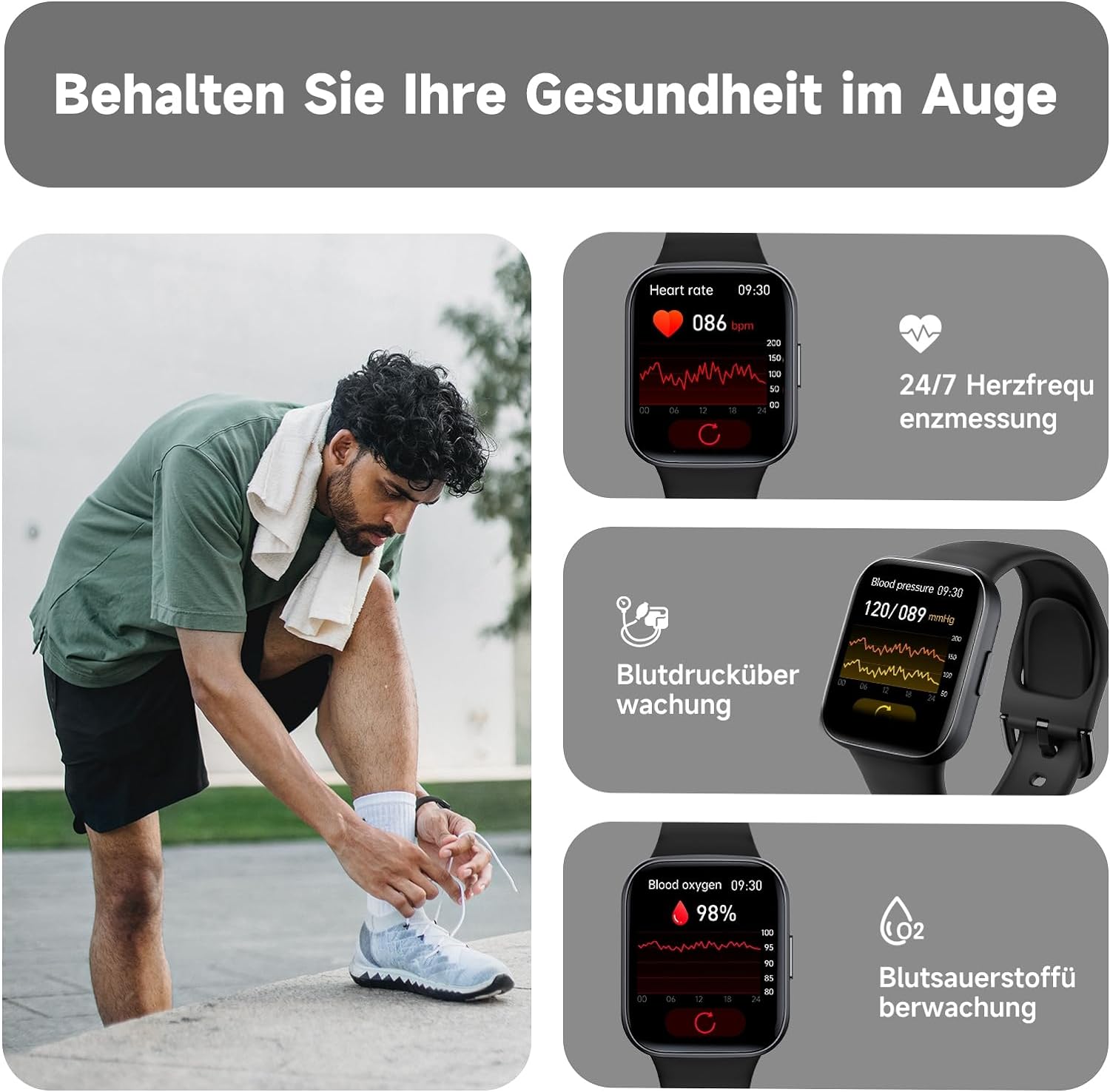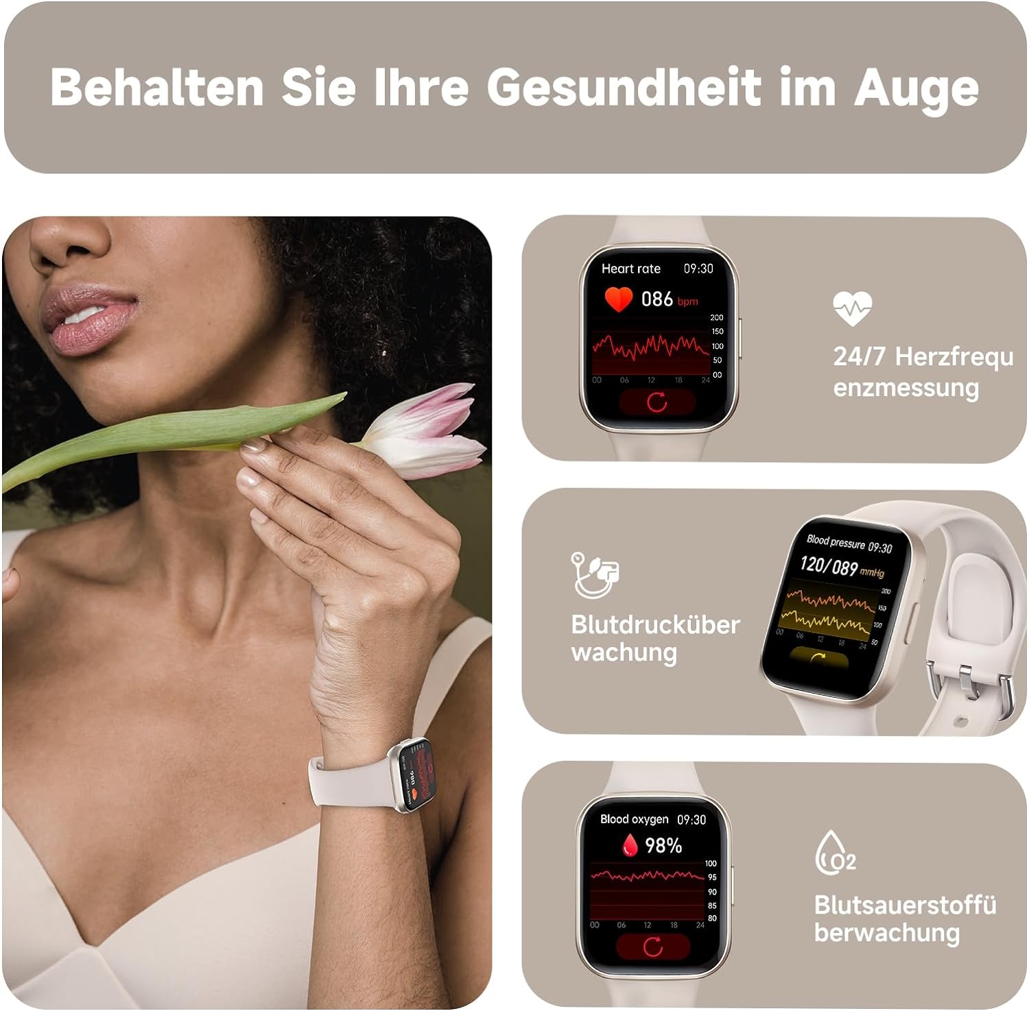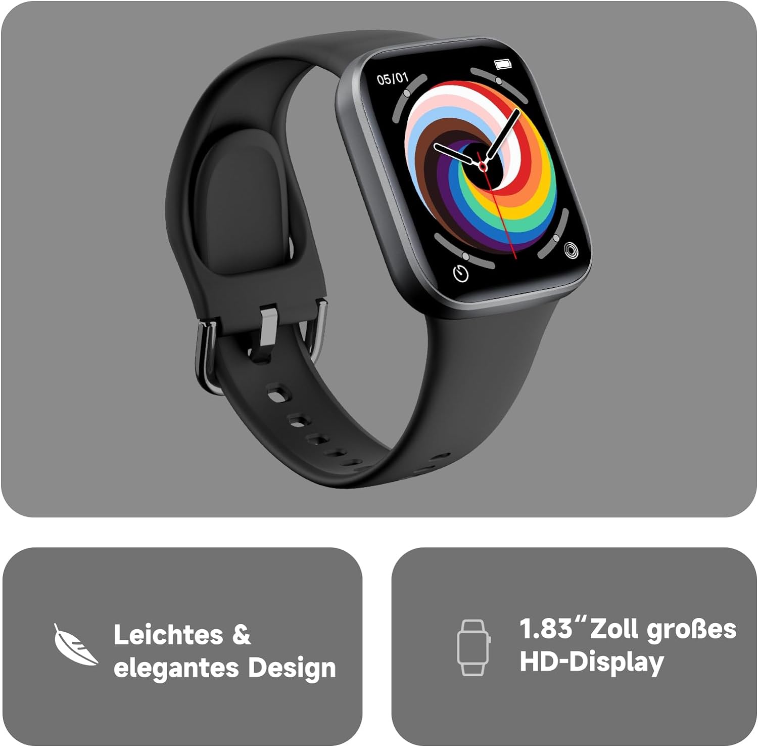 - ➤【Ein Umfassendes Gesundheitsüberwachungszentrum】: Tauchen Sie ein in eine Welt der Gesundheitserkenntnisse mit den umfassenden Überwachungsfunktionen der Smartwatch. Vom Überwachen Ihrer Herzfrequenz und der Analyse von Schlafmustern bis hin zur Überwachung von Sauerstoffgehalt im Blut, Körpertemperatur und Blutdruck, und sogar dem Durchführen von Atemübungen – es wird zu Ihrem persönlichen Gesundheitsüberwachungszentrum.